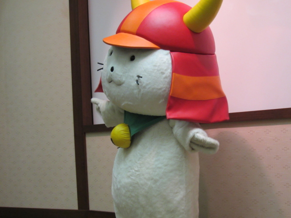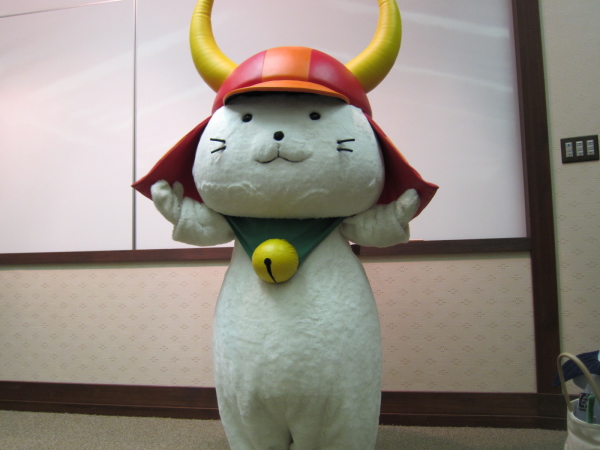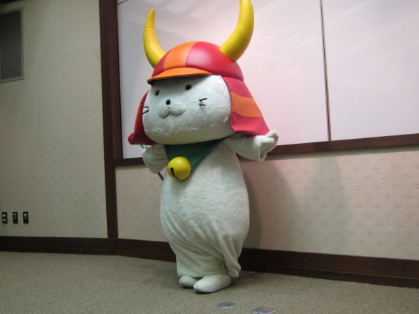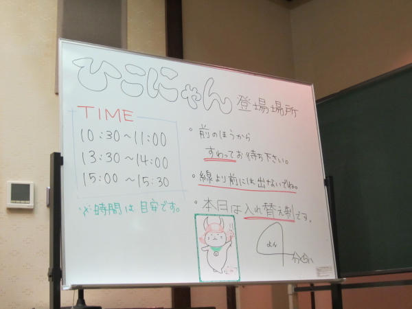雨の為ひこにゃんは、室内(講堂)でのお戯れとなりました