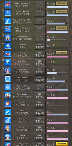 魔法はこんな感じ。上のほうが今あげてるやつです。